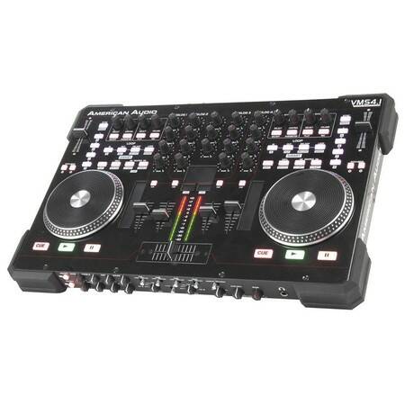 De American Audio VMS4.1 is een 4-kanaals MIDI-controller die kan worden gebruikt met Virtual DJ software. De VMS4.1 beschikt over vier MIDILOG ™ Kanalen (compatibel met alle "MIDI Software" * of analoge ingangen - zoals cd-spelers, draaitafels, etc.), twee microfoon ingangen, gebalanceerde XLR uitgangen, een 4 In / 4 Out ingebouwde Sound Card -in, en wordt geleverd met exclusieve American Audio's "DSP D-Core" Audio Engine binnen.